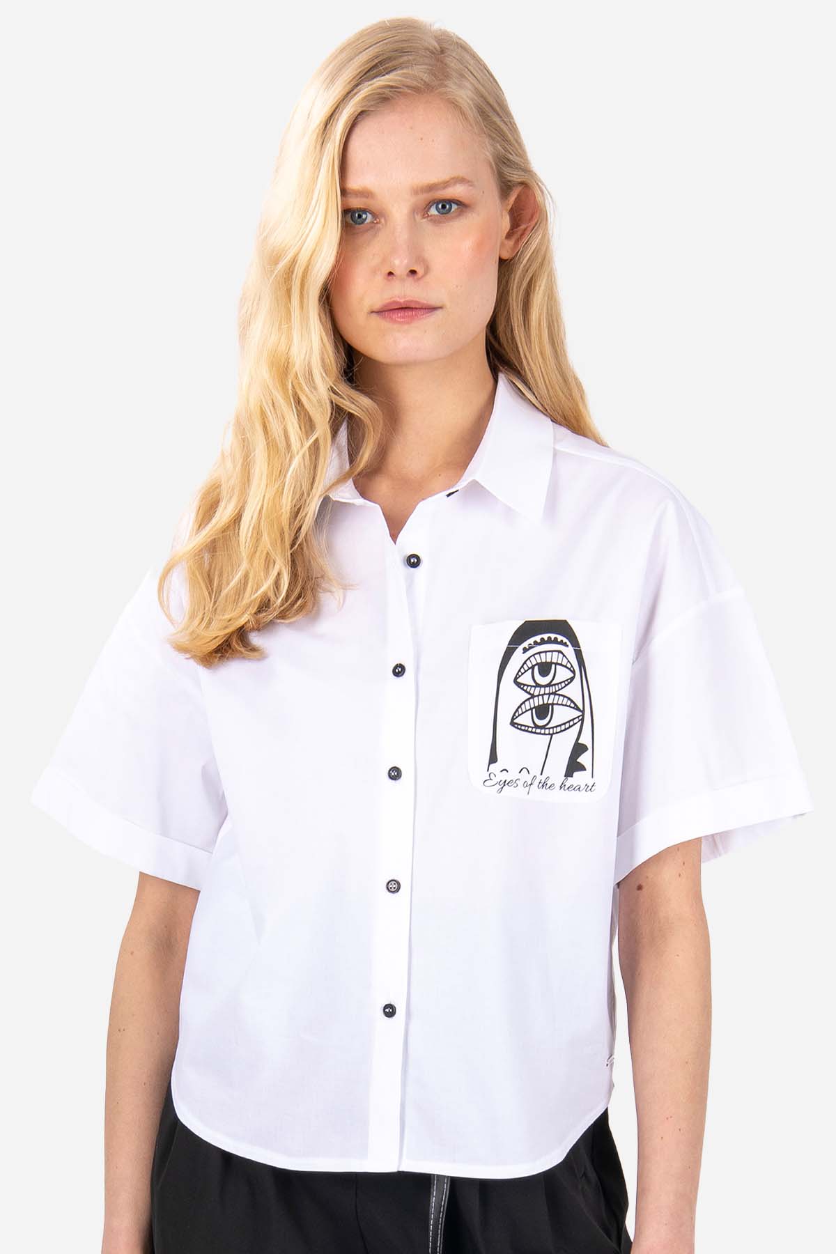 FRN LINE – Black Abstract Print Short Sleeve Shirt for Women FRN6003