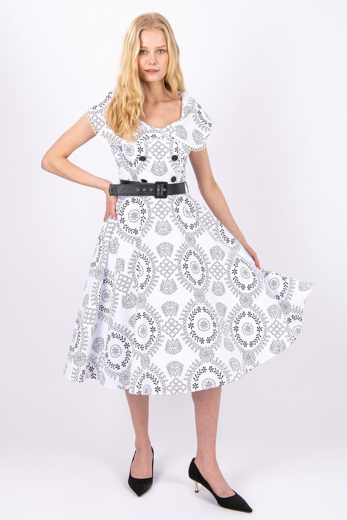 FRN LINE – Black Broderie Dress with Guipure Collar for Women