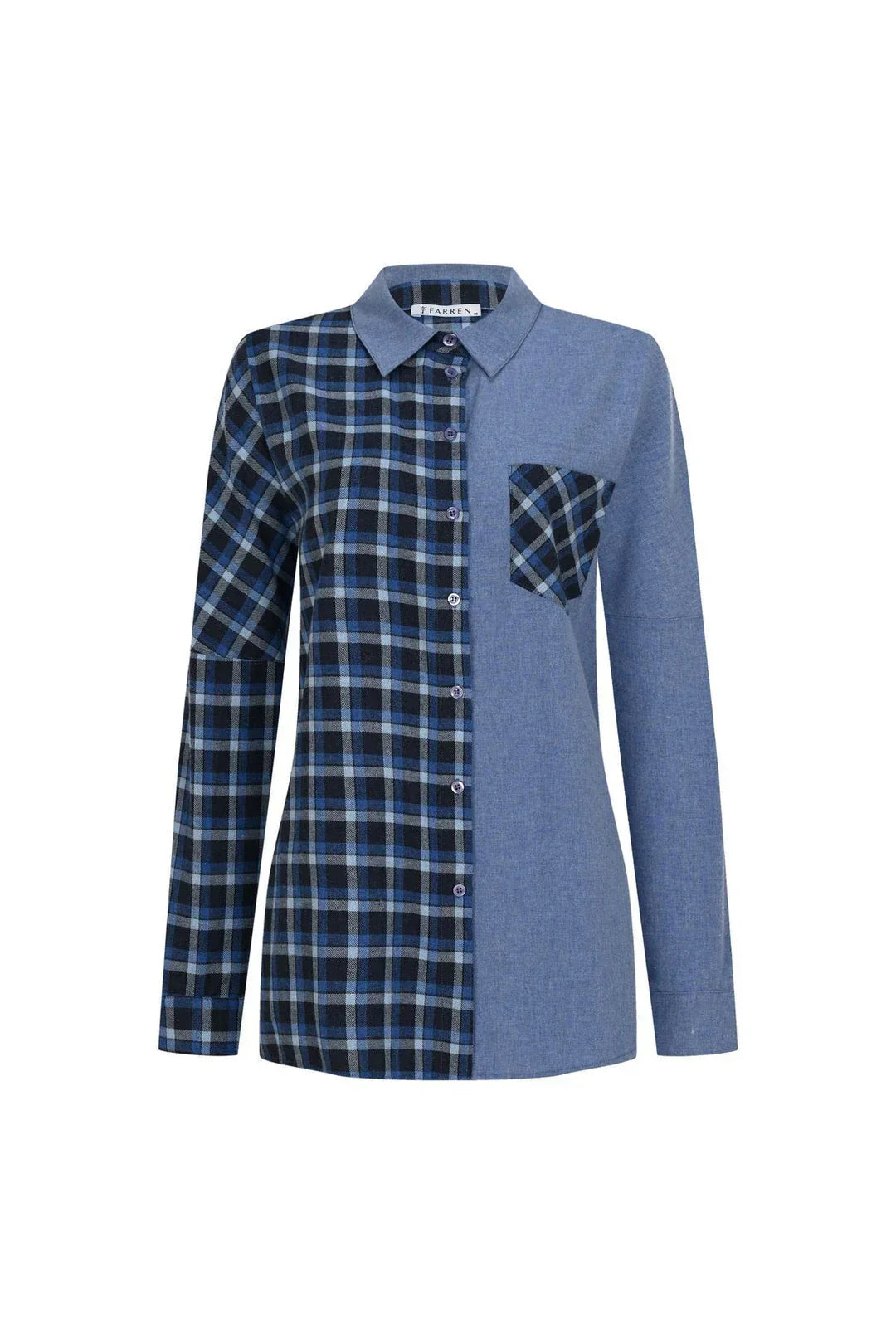 FRN LINE – Blue Two-Tone Patchwork Shirt for Women FRN1114